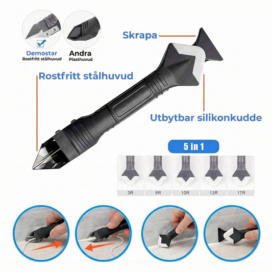 3-i-1 Fogverktyg för Silikon (Rostfritt Stål) – Skrapa, Ta bort & Jämna till