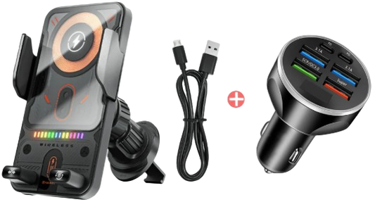 2-i-1 Trådlös Billaddare & Mobilhållare (15W Snabbladdning) – Automatisk Sensor med Infraröd Öppning