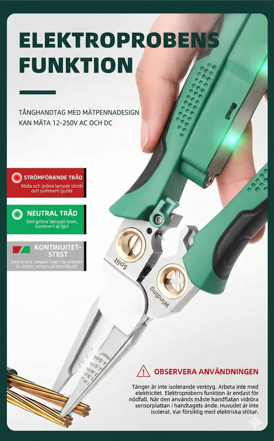 Allt-i-ett Elektrikertång (8 funktioner) – Skala, Klipp och Mät spänning