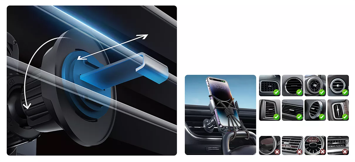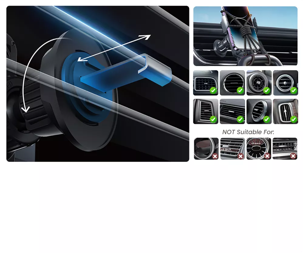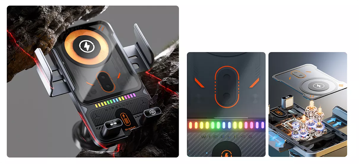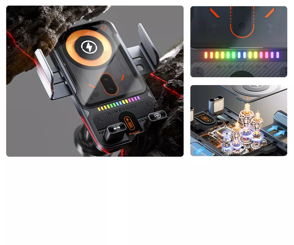 Framtidens bilhållare – Automatisk, snabb och smart Upplev en ny nivå av bekvämlighet i bilen. Med denna smarta mobilhållare behöver du aldrig mer fippla med manuella klämmor. Den inbyggda sensorn känner av när du närmar dig med telefonen, öppnar armarna automatiskt och sluter dem mjukt men bestämt runt din enhet. Allt sköts med en hand, så att du kan hålla fokus på vägen. Samtidigt laddas din telefon blixtsnabbt med upp till 15W trådlös effekt, vilket garanterar att du kommer fram med fullt batteri.