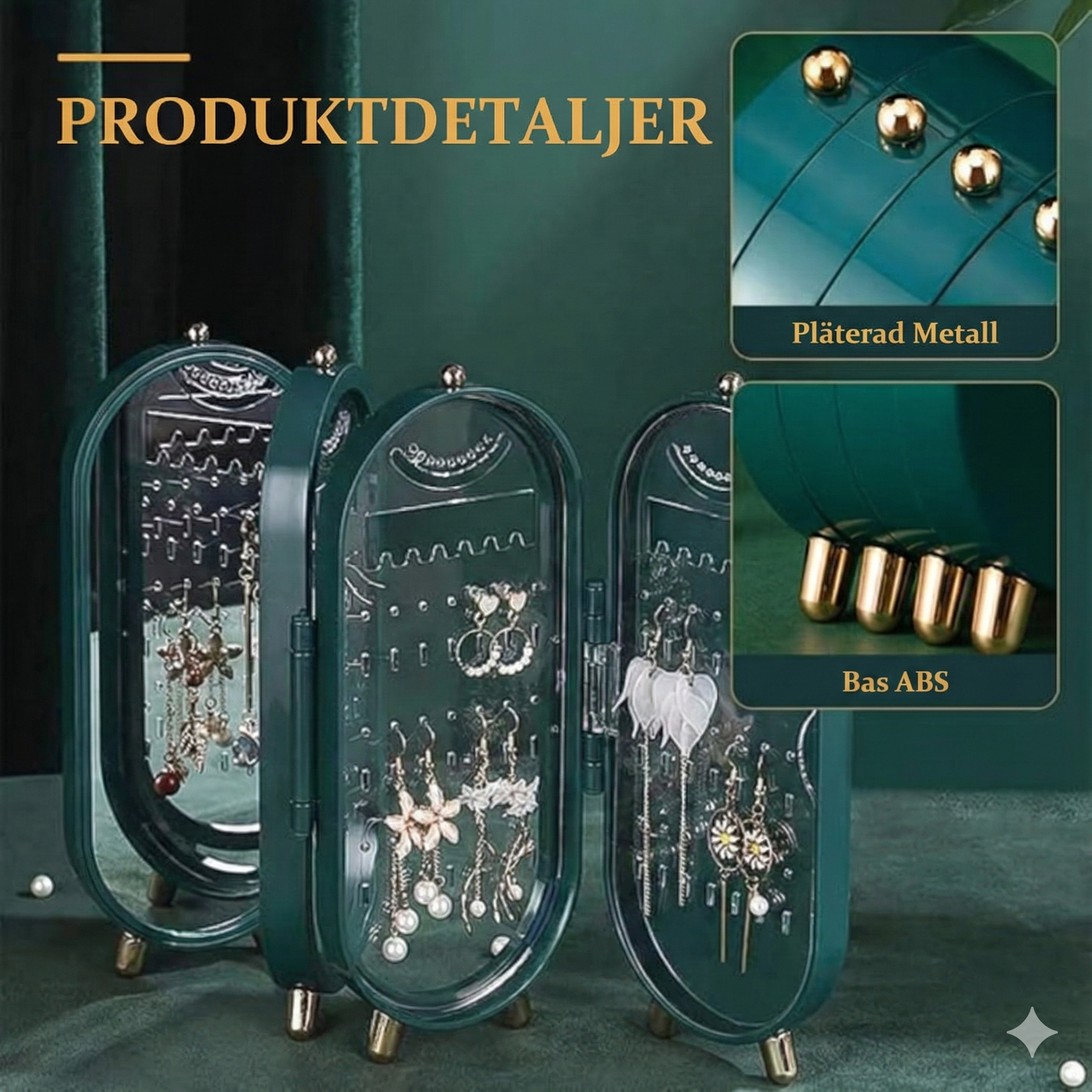 Smidig rutin med inbyggd spegel Med sin smarta, hopfällbara konstruktion skyddas dina värdesaker effektivt mot damm och trassel samtidigt som de hålls lättillgängliga. Den integrerade spegeln tillför en oslagbar bekvämlighet som låter dig prova ut dina accessoarer och fullända din look direkt på plats. Detta gör morgonrutinen betydligt smidigare och förvandlar stunden framför spegeln till en effektiv upplevelse, oavsett om du gör dig redo för jobbet eller en festkväll.
