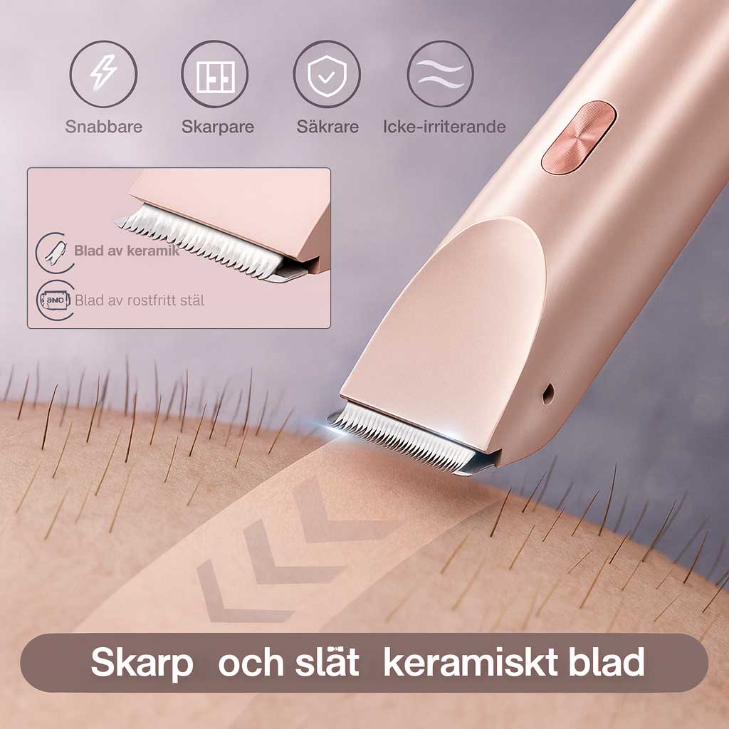 Den ergonomiska designen och de rundade bladen glider mjukt över huden utan att orsaka rodnad eller obehag. Perfekt för känsliga områden som ben, armhålor och bikinilinje. Den skonsamma tekniken ger en slät finish utan att kompromissa med komforten – även för dig med känslig hud.
