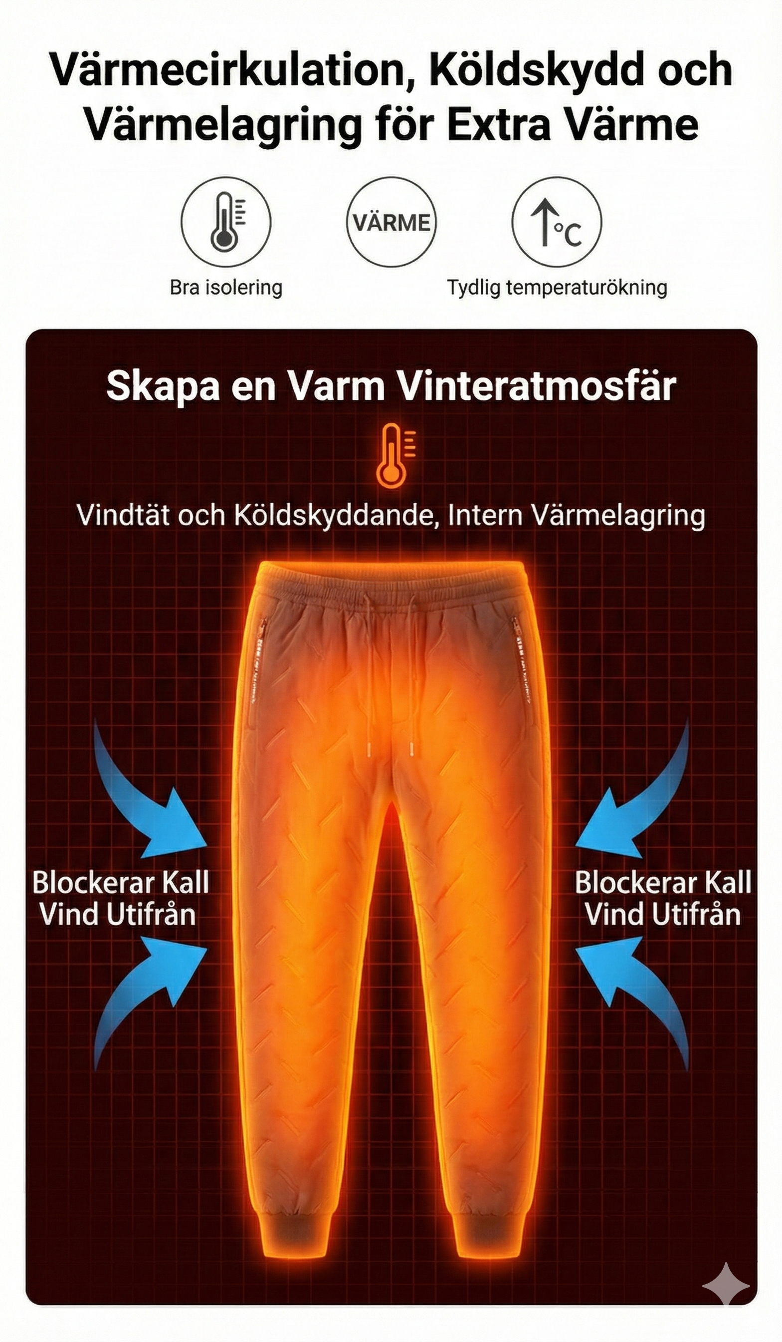Mångsidig stil för vardag och avkoppling Kombinera komfort med stil. Dessa byxor har en lättmatchad design som gör att de passar lika bra till en avslappnad hoodie i soffan som till en elegant kappa på stan. Den snygga passformen gör att du inte behöver kompromissa med utseendet för att hålla värmen. Det är det ultimata plagget för den moderna garderoben som kräver både funktion och estetik.