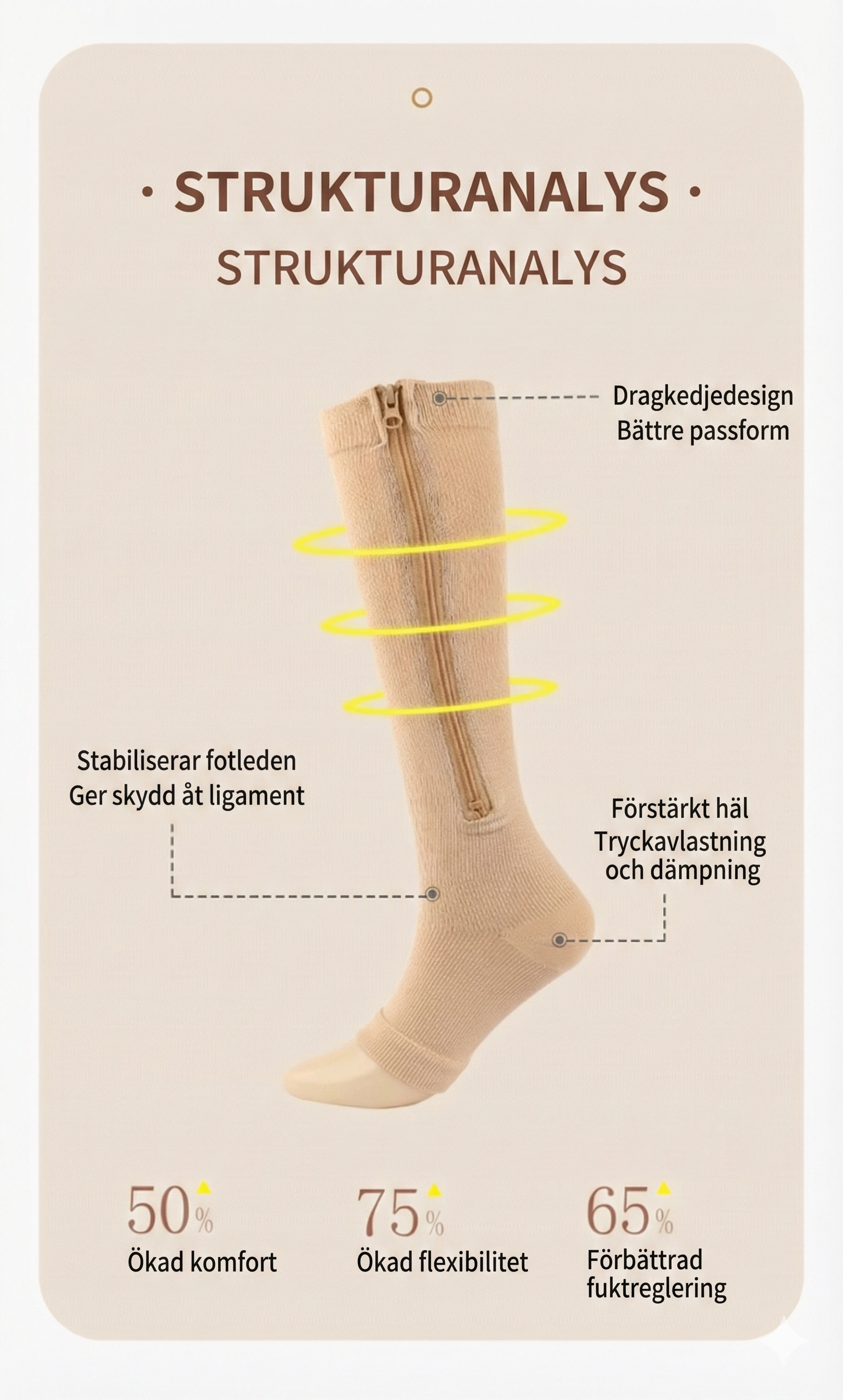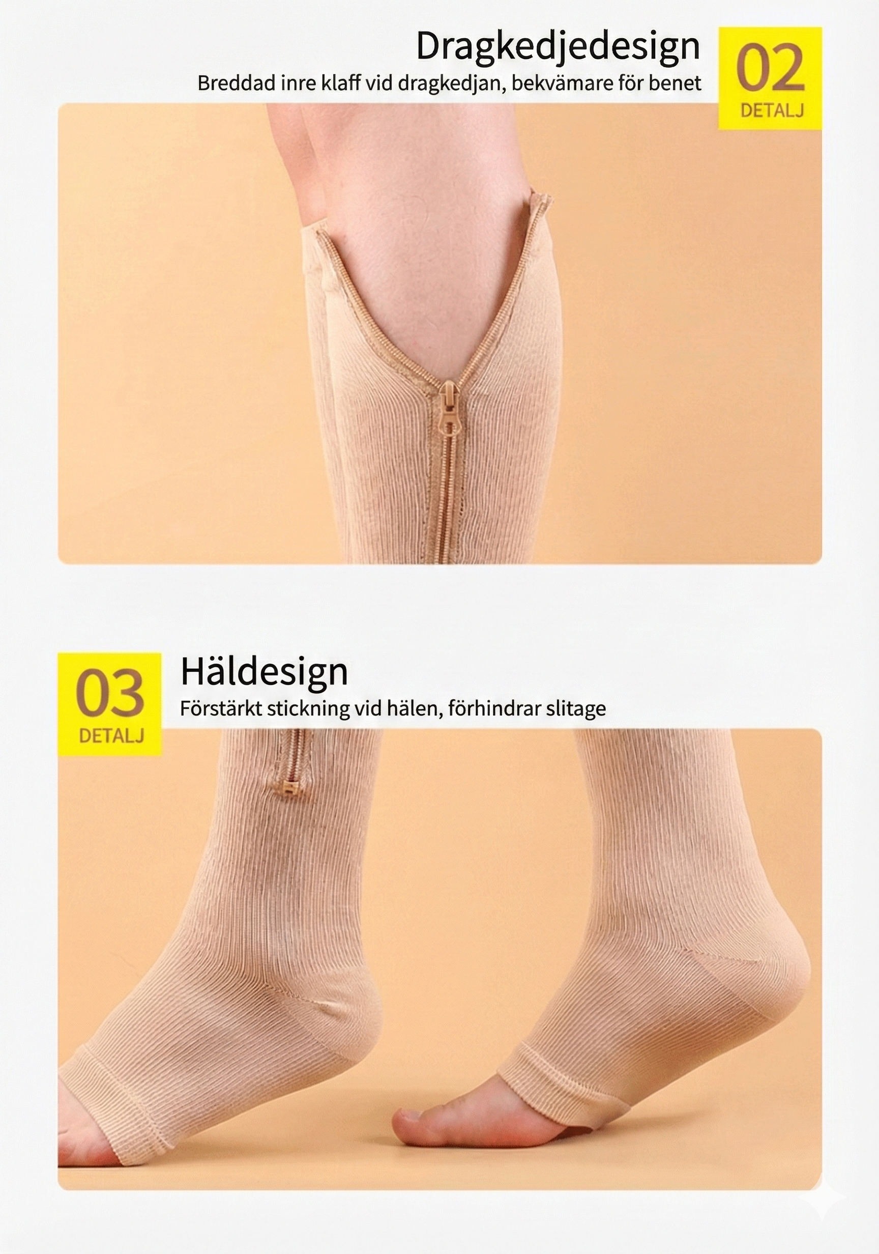 Piggare ben från gymmet till vardagen Oavsett om du står hela dagen på jobbet eller lyfter tungt på gymmet, är dessa stödstrumpor för träning och vardag din räddning. De stabiliserar vadmuskeln och förebygger svullnad, vilket effektivt motverkar trötta ben. Den funktionella designen gör dem till en mångsidig favorit som håller benen energifyllda och lätta från morgon till kväll.