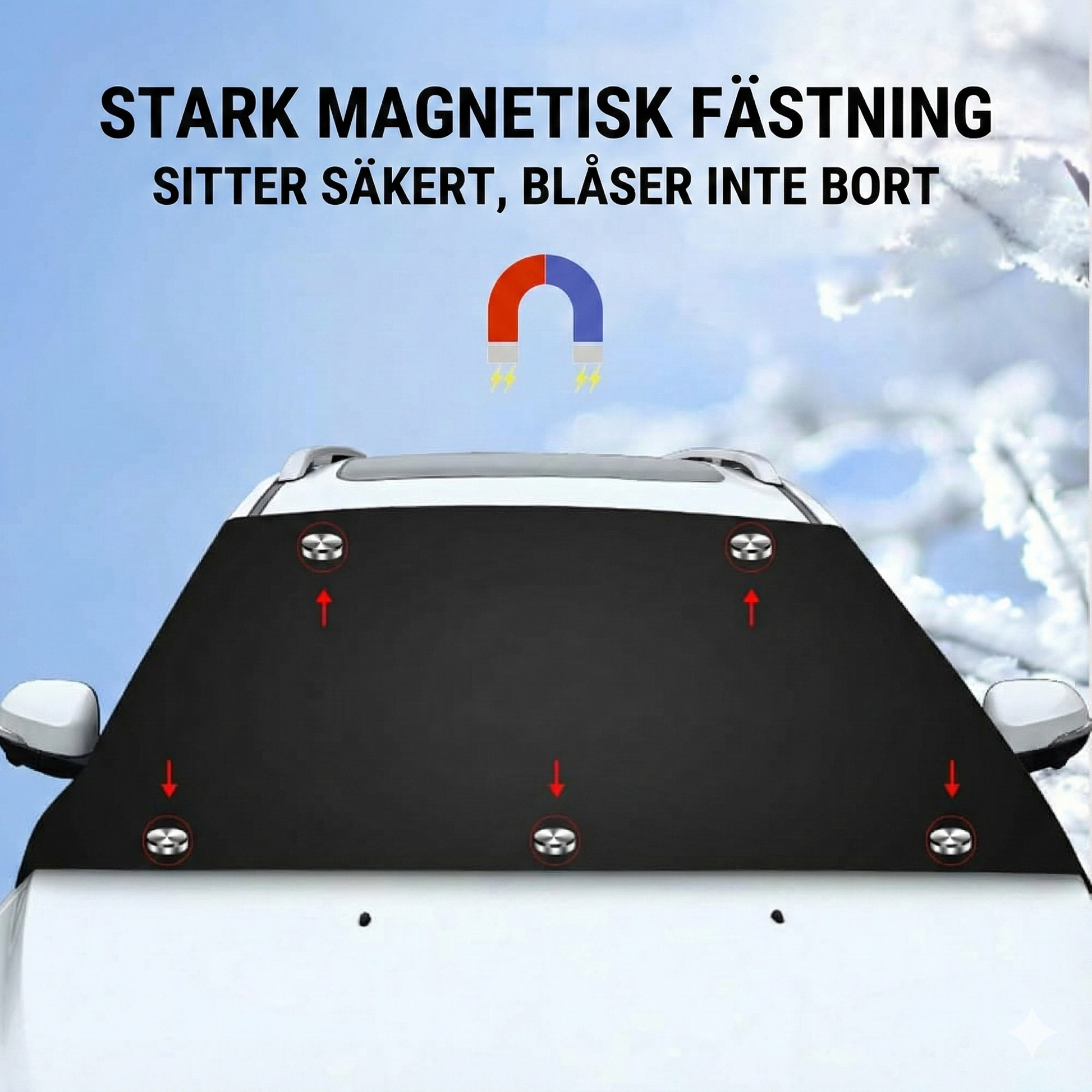 🔒 Stöldsäker Design Detta snöskydd är utrustat med en smart stöldskyddsfunktion. De två integrerade sidoflikarna ("öronen") kläms fast innanför bildörrarna, vilket gör att skyddet sitter tätt mot vindrutan och inte kan stjälas eller blåsa bort.