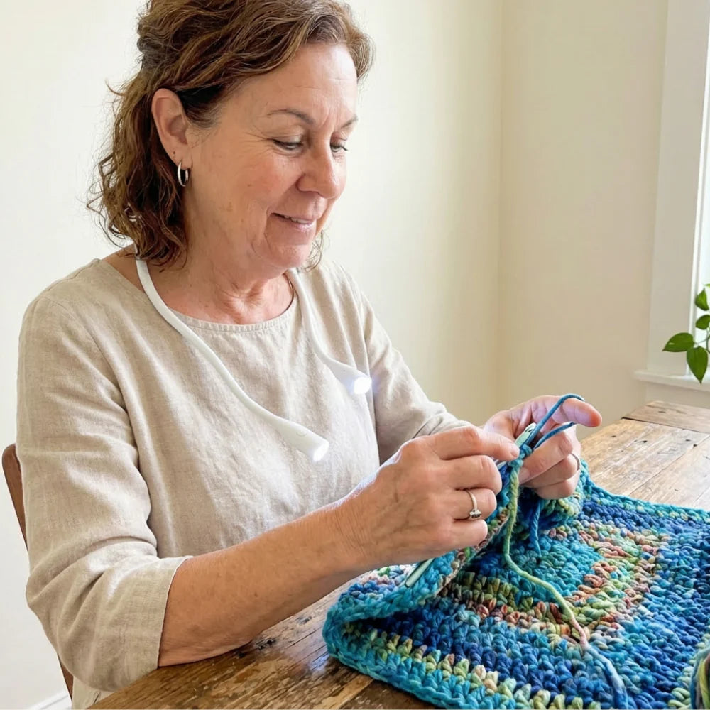 Det optimala ljuset för kreativa händer Ibland kan ett mörkt garn eller ett komplicerat mönster göra det svårt att se exakt vad man gör, vilket leder till att man tappar glädjen i skapandet. Denna nacklampa är speciellt framtagen för dig som älskar att virka, sticka eller brodera. Den lyser upp ditt projekt direkt utan att kasta störande skuggor, samtidigt som du har händerna helt fria. Lampan är lätt, flexibel och har tre olika ljuslägen så att du kan anpassa belysningen perfekt efter dina behov för ökad precision i varje stygn.
