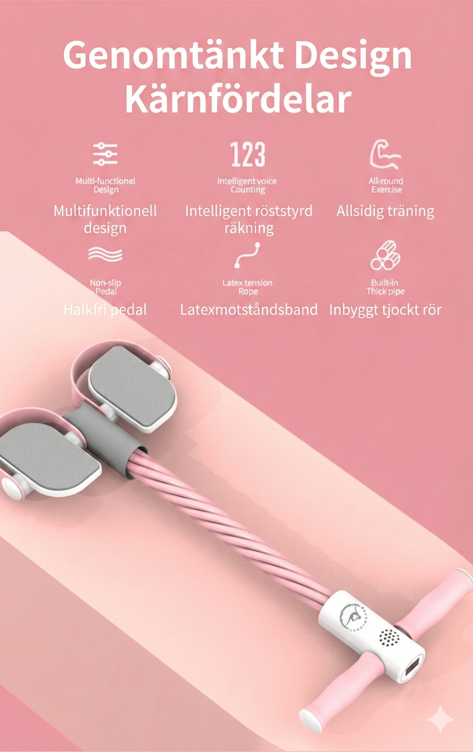 Forma kroppen och stärk coremuskulaturen Drömmer du om en plattare mage och en starkare rygg? Detta träningsband med fotstöd är det perfekta redskapet för att säga adjö till putmagen. Genom att ge extra motstånd vid situps och benlyft hjälper det dig att effektivt bränna fett och trimma midjan. Det är en smart uppgradering av din hemmaträning som fokuserar på att ge dig en vacker hållning och en tonad kropp.