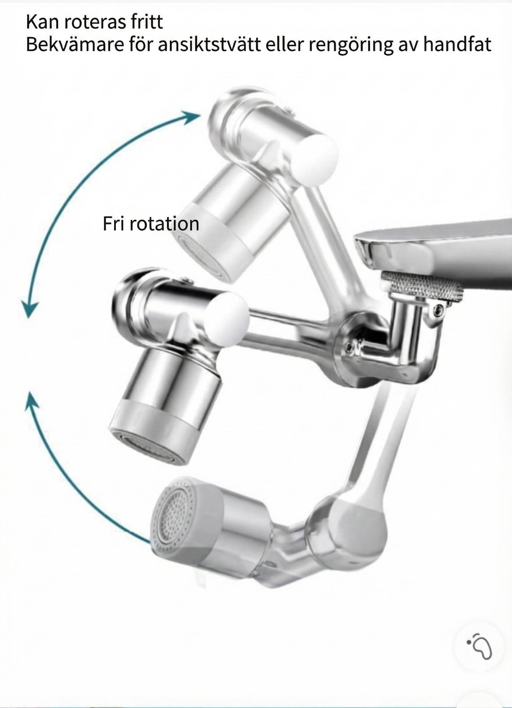 Upplev total frihet vid handfatet med denna revolutionerande kranförlängare som förändrar hur du använder vatten i vardagen. Med sin imponerande 1440° rotation och smarta "robotarm"-design kan du rikta vattenstrålen exakt dit du vill, vilket eliminerar döda vinklar helt. Det innebär att du enkelt kan nå varje hörn av handfatet för snabb rengöring, eller fylla höga hinkar och vaser som inte får plats under en vanlig kran.